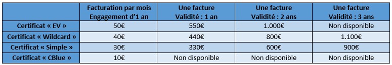 • Customers renting a dedicated server from CBlue have a discount of 5€ on the monthly fee or 55€ on the annual fee for the first certificate installed on this server. This discount is due to the fact that it is not necessary to assign a new IP address for the first certificate.